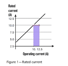 For example, if the operating current is 10 A, the rated current should be: 1.25 × 10 A = 12.5 A
